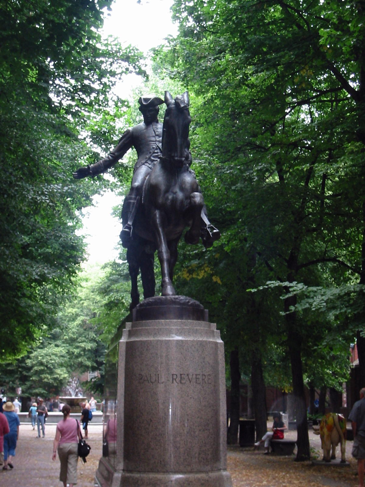 The North End of Boston is still what we would today call a blue collar place. Its streets are narrow and the buildings are close-packed. The Paul Revere House, at 19 North Square, is surrounded by modern buildings and businesses. Didn’t matter to me though as I strolled through the house on a self-guided tour. I found myself struck as I exited from the back door and walked down the back steps; probably the same exit route taken by Revere himself that night as he left home and headed down to the water to retrieve the small boat he kept hidden there. Like a lot of historic areas, you sometimes have to use your “mind’s eye” to envision what things were really like. As I looked around North Square, I envisioned how Mr. Revere’s world would have looked. At last, on that first trip to Boston, I was following in the footsteps of Paul Revere!