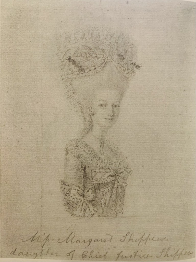 Although Arnold had beat a hasty retreat to New York City, Peggy still remained behind at Robinson House. From the Vulture’s deck, her husband had scribbled off a message to Washington pleading with him for her safety and declaring her ignorance to the entire scheme. There are many versions of what transpired next, but according to the American officers at Robinson House, Peggy Arnold broke down in hysterics, seemingly going mad at the news of her husband’s treason. According to Col. Richard Varick, one of Arnold’s aides who was recovering from a fever in the house, a shriek was heard and the staff officer found Peggy with her hair “disheveled and flowing about her neck; [in] her morning gown with few other clothes remain[ing] on her—too few to be seen even by a gentleman of the family, much less by many strangers.” She then proceeded to ask if he had ordered her child to be killed and to “spare her innocent babe.”[1]