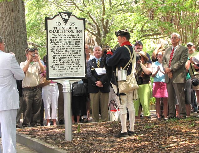 The author unveiling a historic marker in Marion Square in Charleston, SC