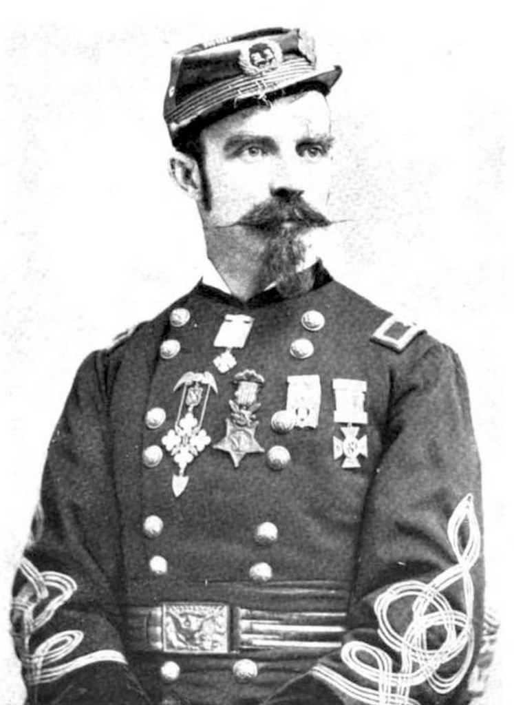 Not to be outdone by their neighbors in Trenton, on January 3, 1877, Princeton celebrated their history with another sham battle. Hundreds of militia men gathered to recreate the battle on the anniversary. Portraying General Washington in this battle was James Madison Drake, who was awarded the Congressional Medal of Honor for heroics while serving as a lieutenant in the 9th New Jersey during the Battle of Bermuda Hundred. Again, the troops largely wore their modern militia uniforms and Drake wore his Medal of Honor in the sham battle. (Drake’s ancestor was the owner of the Drake House, where Washington held a council of war in 1777 and is now a museum). Among the troops he commanded was Company C of the 3rd New Jersey National Guards (Phil Kearny Guards). General Philip Kearny had been killed during the Civil War at the Battle of Chantilly on September 1, 1862. The Sun newspaper noted that the Kearny Guards carried with them “the battle flag of the lamented General in whose honor it is named. In the center of the flag is a red Greek cross, Gen. Kearny had it with him at the battle of Chantilly, in which he yielded up his life blood on the altar of his country. It is but a remnant now; not more than half of it still clings to the staff.”