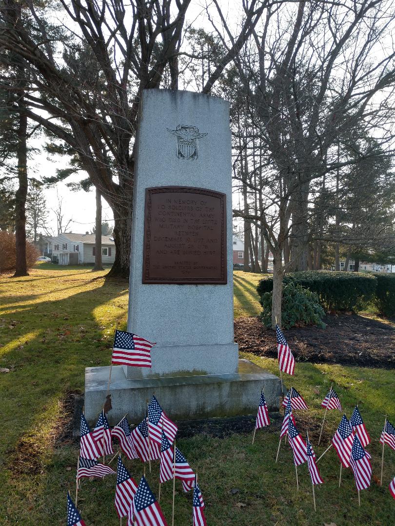 On the edge of the historic town of Litiz, Pennsylvania in Lancaster County stands an impressive, unique, and solemn, historic site. Two stone monuments and a plaque comprise the complex, marking the final burial of Continental soldiers from the hospital that stood nearby.