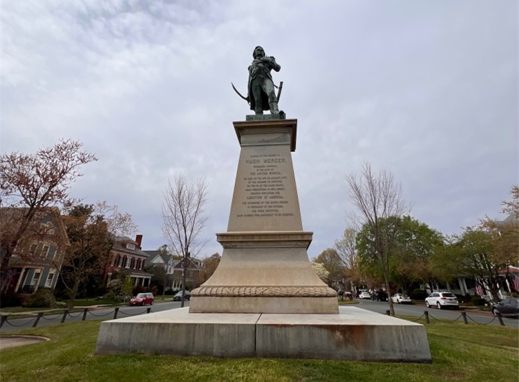 Just off the grounds, beyond the path, you can see a monument dedicated to General Hugh Mercer. A Fredericksburg resident and friend of Washington, Mercer served in the American Revolution and died at the Battle of Princeton in 1777.