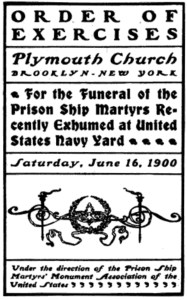 [xii] Prison Ship Martyrs’ Monument Association of the United States. Secretarys Report of the Obsequies of the Prison Ship Martyrs at Plymouth Church, Brooklyn, N.Y. June 16, 1900. (New York: Macgowan & Slipper, Printers, 1901), 22.