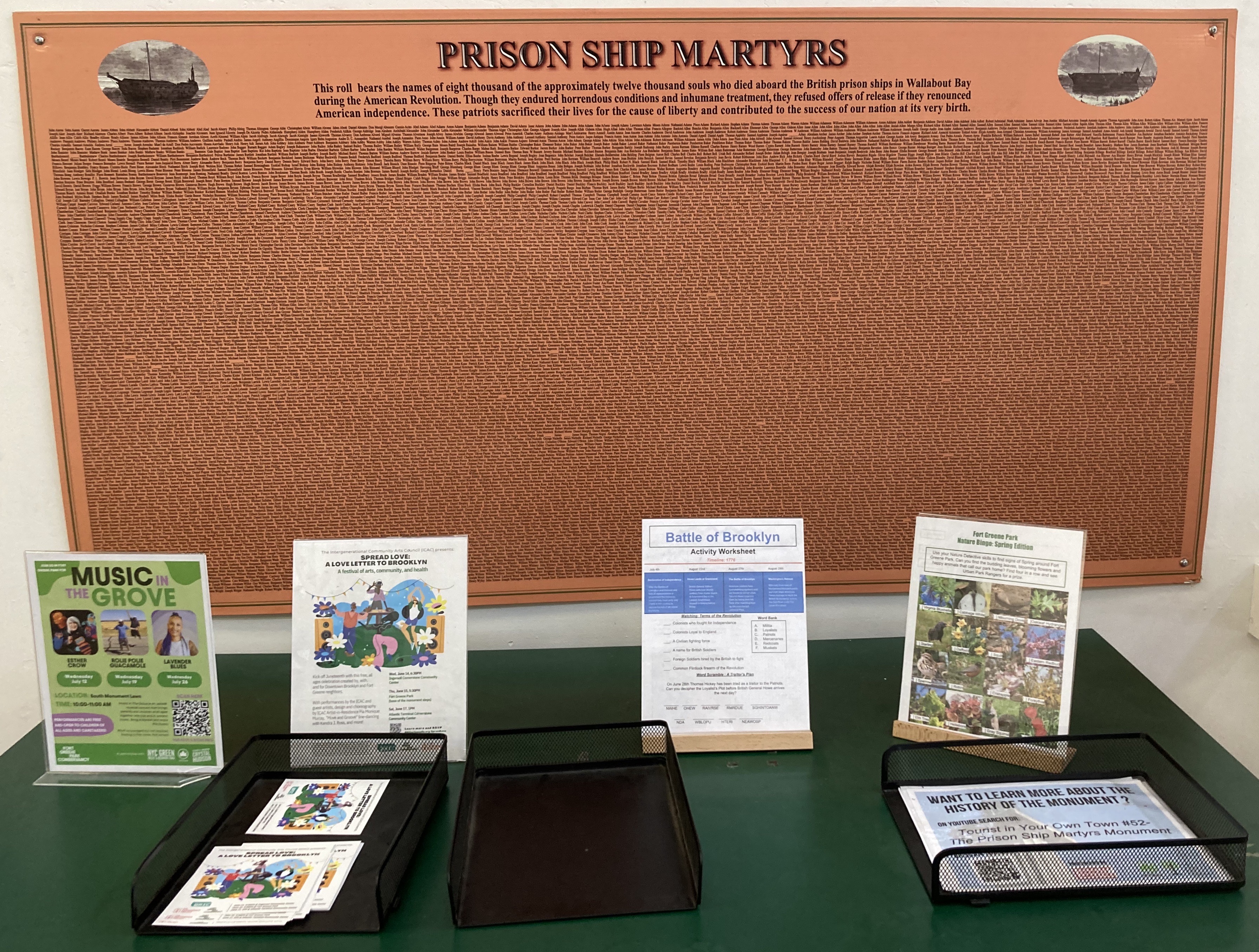 This placard in the visitor center lists 8,000 of the prison ship martyrs who perished in the hell ships.