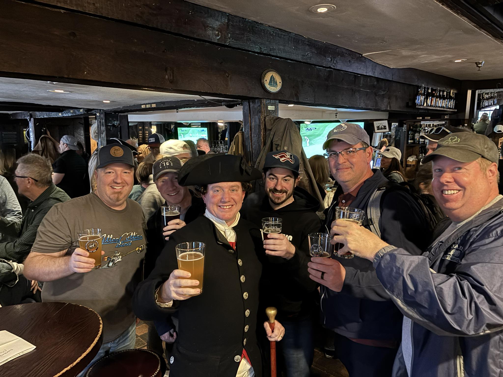 By the end of the day, we were all too tired to run anymore. We reached the end of our rope, a long 32 hours after our ERW extravaganza began. As you can imagine, we worked up quite an appetite. There was no better place to end it than at the Menotomy Grill to raise a glass of flip, the same drink Jason Winship and Jabez Wyman were consuming when British soldiers killed them at Cooper’s Tavern. Thankfully, our drinks were consumed under much less hostile conditions, but perhaps in as tired of a state as the participants in the first clash of the Revolutionary War.