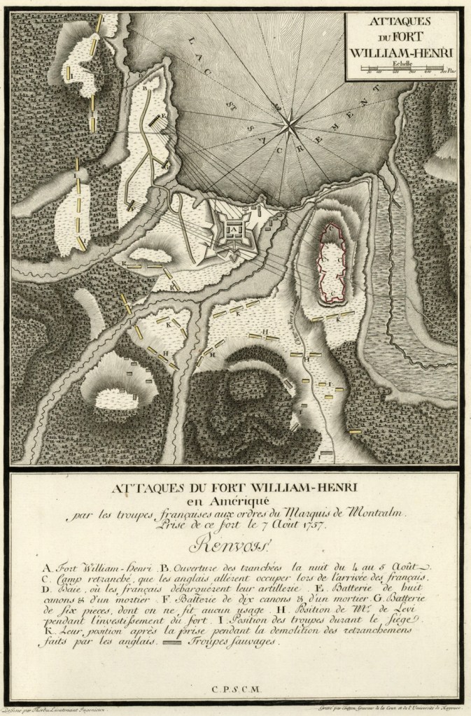 On this date 167 years ago, the infamous siege of Fort William Henry raged along the southern shore of Lake George, New York. For nearly a week the British and Colonial garrison inside the fort and outside its walls had endured through a near hopeless situation. Casualties had mounted, guns and mortars had burst from incessant firing, and the French siege lines had crawled to within 150 yards of the northwest bastion. Reinforcements were not coming to relieve the defenders. The following day, Lieutenant Colonel George Monro had little choice but to surrender his force under honorable terms to the French commander, General Montcalm. On August 10, the column marched out of the fort and nearby entrenched camp in route to Fort Edward. French-allied Indians fell upon the soldiers, and the women and children who accompanied them, and the “massacre” of Fort William Henry ensued.