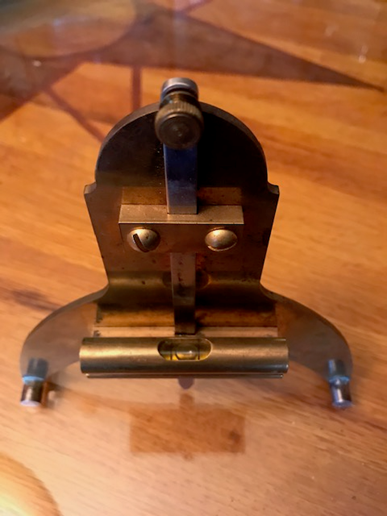 The following picture shows what was called the Gunner’s level or the Spirit Level. It was the quintessential instrument carried by gunners to level the gun. In a cylinder in the middle of the gunner’s level was a vial and when the trunnions are level the bubble in the vial will be in the middle. At that point the gun was leveled.