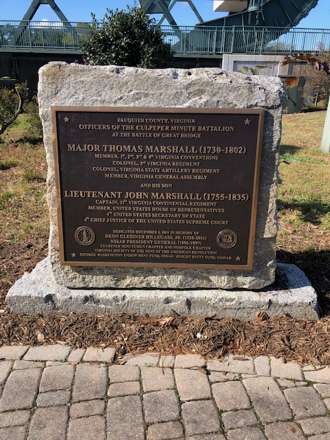 John Marshall went on to serve as the fourth Chief Justice of the United States Supreme Court in 1801. Marshall remained at the post for thirty-four years, and, during his tenure, the Marshall Court brought the role of the Supreme Court to the fore, issued more than 1,000 decisions, and set the precedent of handing down a single majority opinion. These accomplishments and influences are just some of many that Marshall had on the Court, the federal government, and American history. Today, on the 245th anniversary of the battle of Great Bridge, it’s interesting to pause, reflect, and wonder how very different the United States and the Supreme Court might have been had Colonel Wofford’s forces, among them John Marshall, been defeated that day at the “second Bunker’s Hill affair….”